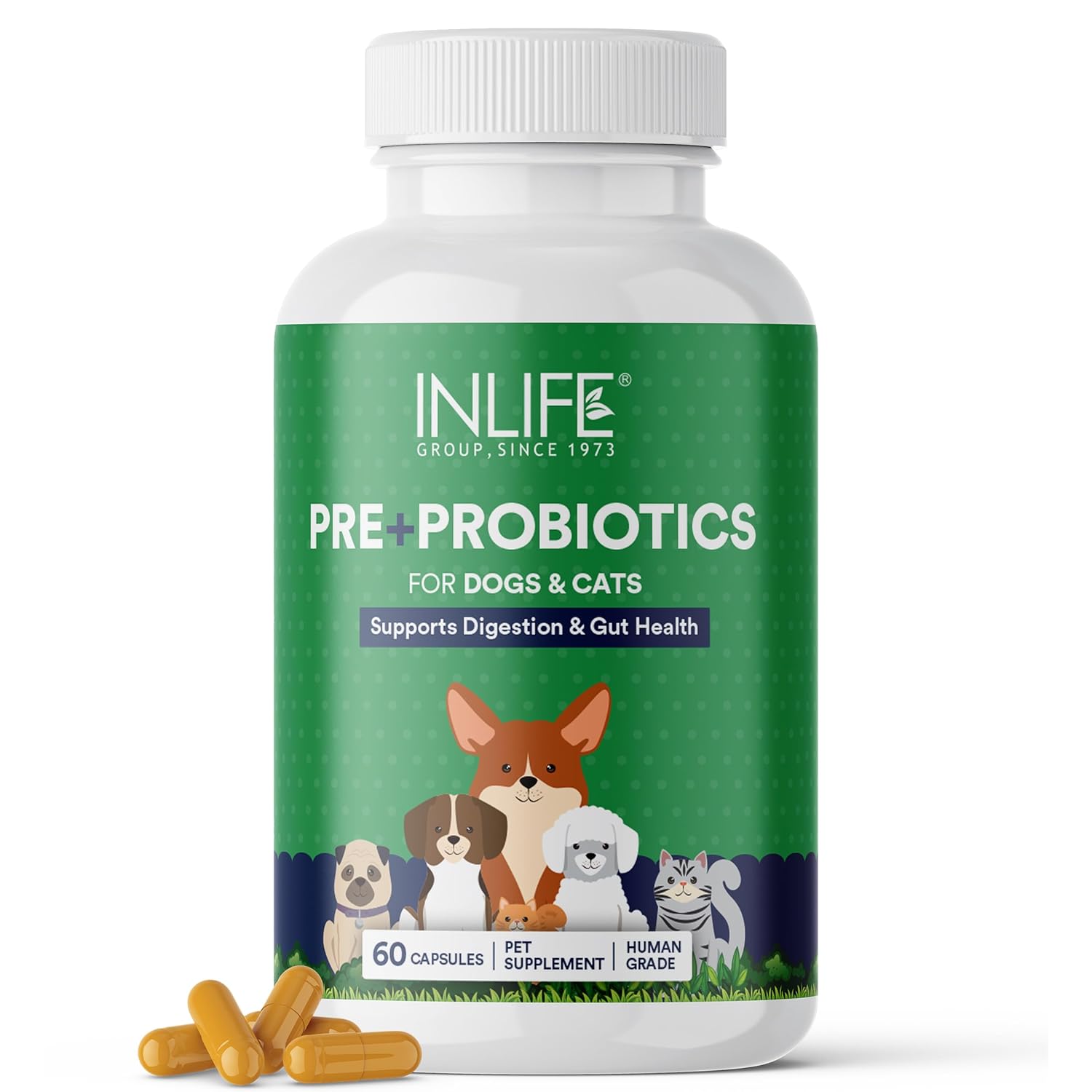 INLIFE Prebiotics & Probiotics for Dogs & Cats, Digestive Health & Immunity Support (60 Caps)