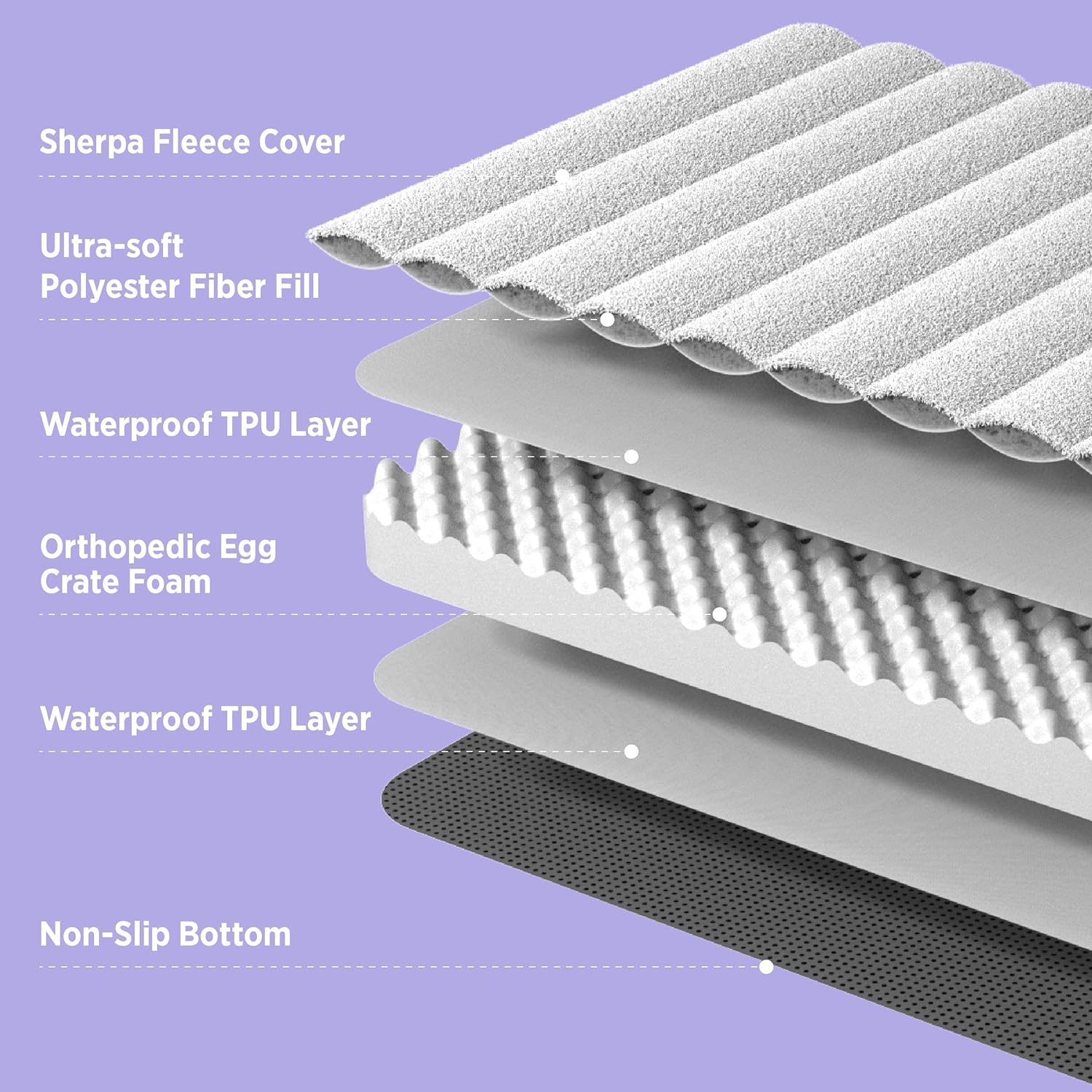 Give your pup the comfort they deserve with this orthopedic pet bed. Made with thick egg-crate foam and a fuzzy, removable cover, it’s supportive, waterproof, and perfect for cozy indoor naps.